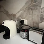 Among the self-catering amenities provided is an equipped kitchen with an electric kettle, a refrigerator, and a stove top. This accommodation is within reach of the nearest bus stop Kavaje - Golem Transit Line.